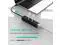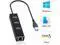 The USB 3.0 hub is made of black matte aluminum and has smooth rounded edges. This hub is essential for work or travel, lightweight, and easy to carry.