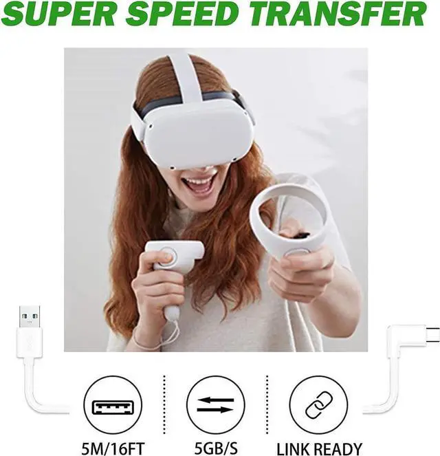 High-speed transmission: USB 3.2 GEN 1 Data transfer rate up to 5Gbps, which allows it connects Oculus Link Program with no lag or delay.