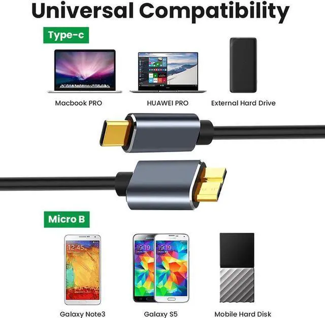 Plug and Play: No driver needed for the usb C 3.0 to micro-b cable. Just plug-and-play for hard drive enclosures, printers, modems, cameras, and other SuperSpeed USB peripherals.