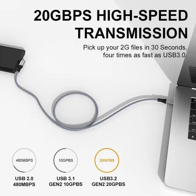 Our USB 3.2 cable fully complies with USB 3.2 Gen2x2 standards, it offers up to 20Gbps SuperSpeed data transfer with Thunderbolt 3/4 & USB4 External SSD Drive, just transfer large files in seconds.