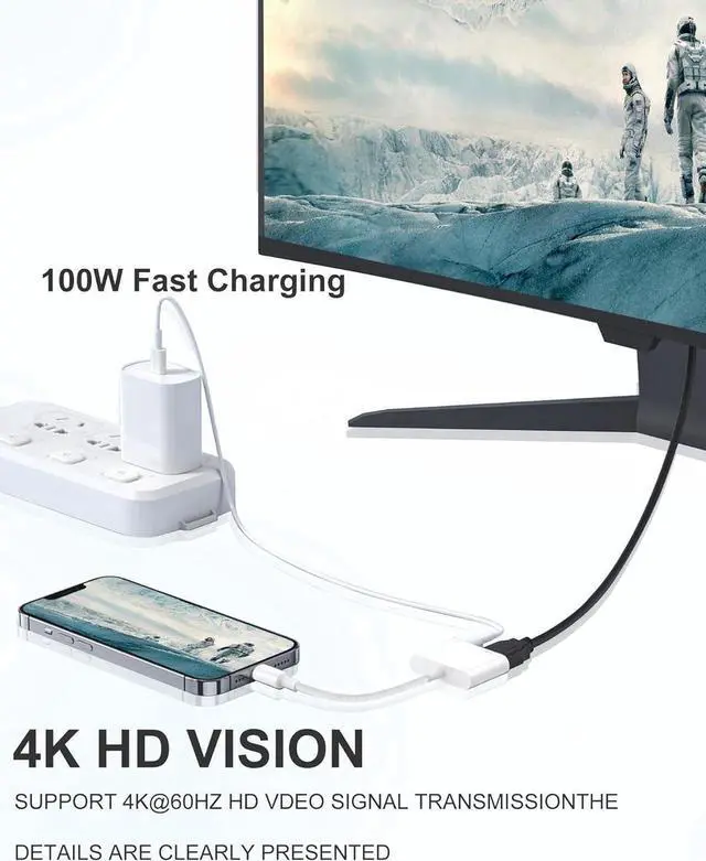 HDMI inputCrystal-Clear Visuals: Digital AV Adapter enjoy stunning 4K video output at 60Hz for an immersive viewing experience with vivid colors and sharp detailsPlug-and-Play