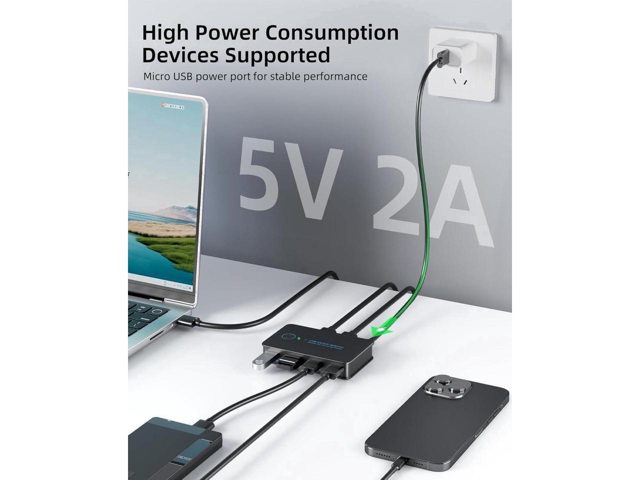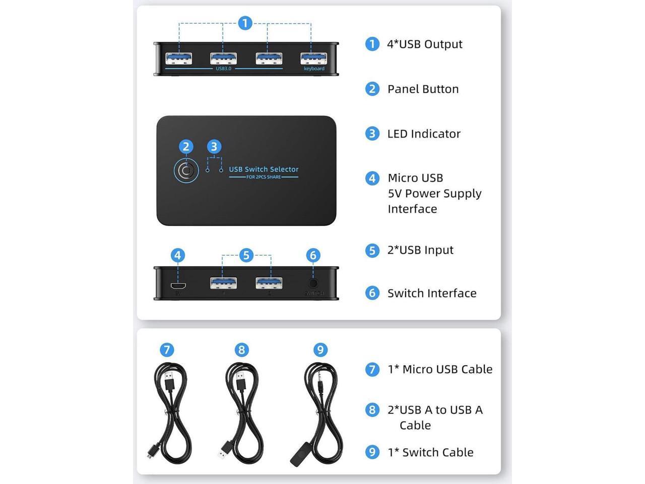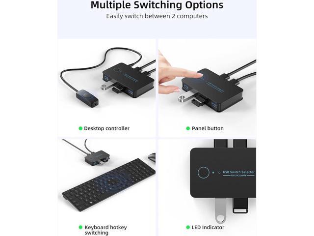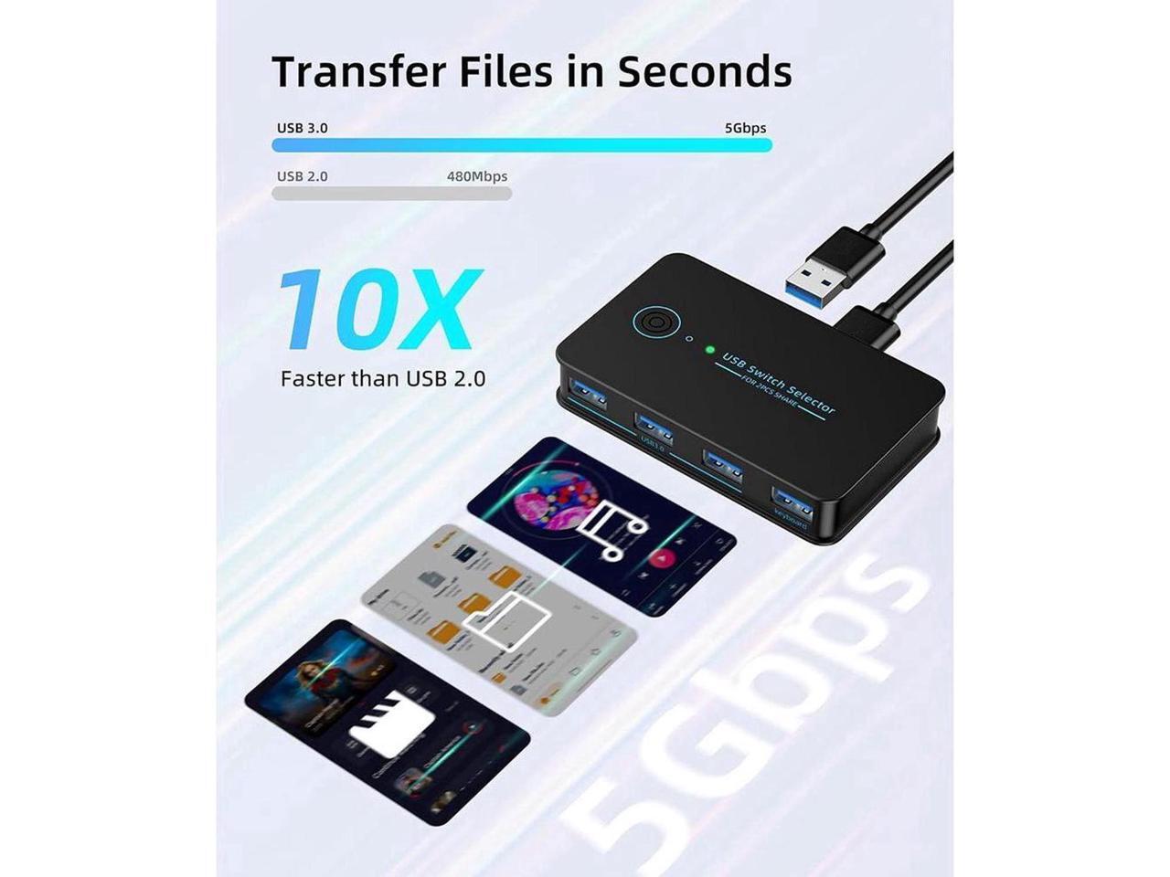 - With 4xUSB 3.0 ports: the USB 3.0 switcher supports ultra-fast USB 3.0 data transfer rates of up to 5Gbps, working flawlessly with high-bandwidth USB 3.0 devices, such as external hard disks, cameras,digital cameras, etc., and backward compatible with USB 2.0 and USB 1.1 devices.