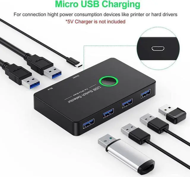 2 input 4 output: this USB 3.0 switch allows 2 Computers to Share 4 USB devices.