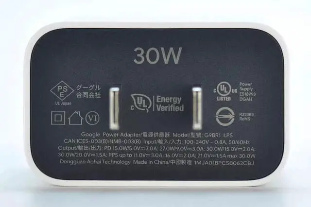 As the first Pixel 6 with a self-developed chip, Google has upgraded the charging system, Pixel 6 and Pixel 6 Pro both support 30W wired fast charge. But the good news is not double, Google also learned from friends to not provide a standard charger for mobile phones, and launched a 30W charger for users to buy. Google this 30W charger, the classic white shell straight plate design, only support PD 3.0, PPS33W fast charge protocol