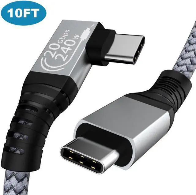 240W USB C to USB C Cable 10ft, USB C 3.2 Gen 2 Cable 20Gbps Data, 90 Degree Right Angle Thunderbolt 3 USB C to C Cable, 4K@60Hz Video Cord to Compatible with USB-C MacBook, i-Pad Pro, Monitor etc.