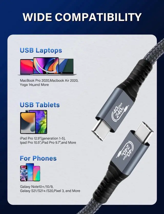 Highly Compatible: Compatible Thunderbolt 4 / 3 Devices, works great with all USB-C devices.