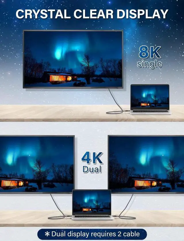 8K Support: Display video content to a single monitor in up to 8K, or to dual monitors in 4K. (Dual-monitor display requires 2 cables. )
