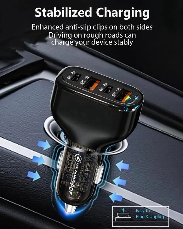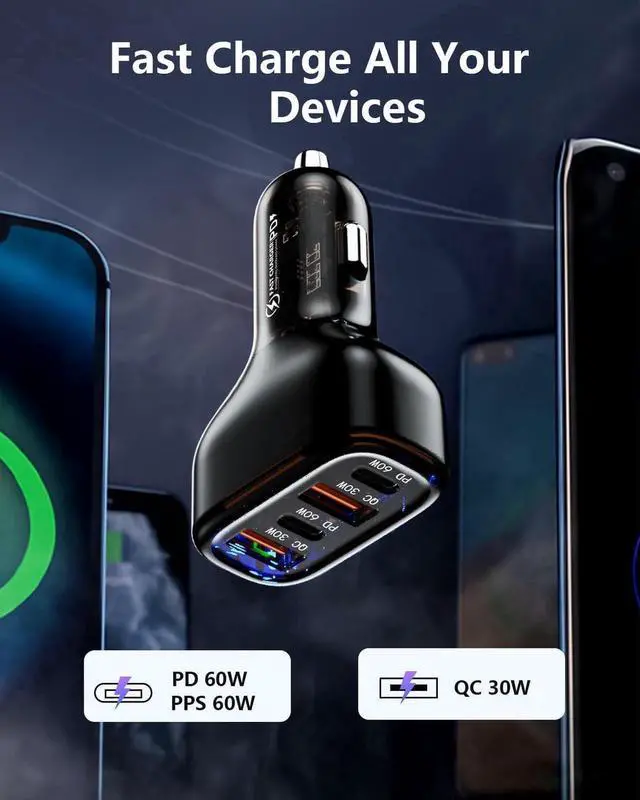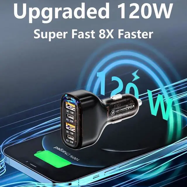 [4-in-1 Car Charger] The latest version of the 120W cigarette lighter charger adopts a unique translucent design.