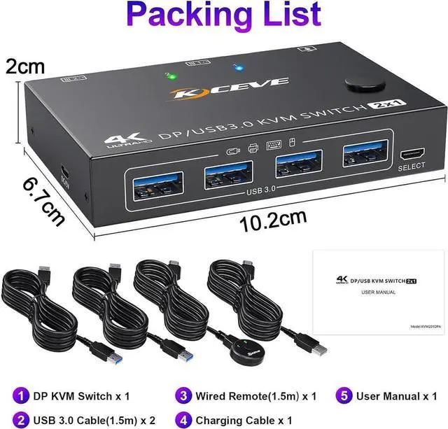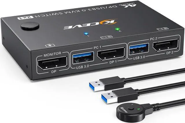 [Displayport KVM Switch] This DP KVM switch allows you to control 2 computers with only one set of controls (monitor, wireless mouse, keyboard and printer) and supports webcams. You can freely switch between the 2 computers. Each PC requires 1 DP cable+1 USB cable connected to the KVM switch.