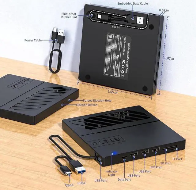 [7 IN 1 CD/DVD Drive] Our portable DVD player is not only a CD/DVD reader, but also a CD/DVD burner/burner, 4 port USB hub, SD card reader, TF card reader (SD card and TF card are not used at the same time)