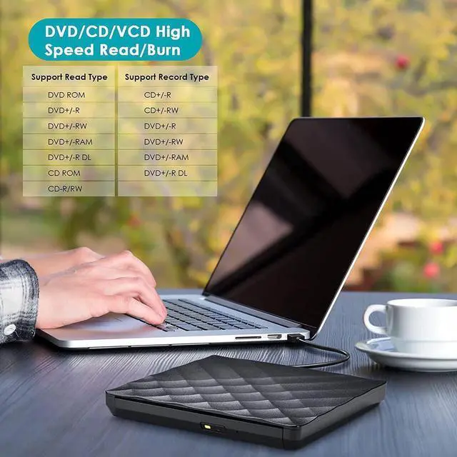 Slim design and lightweight allows us to use this CD DVD reader/writer at any time anywhere, no matter at home, in the office, or on a trip.