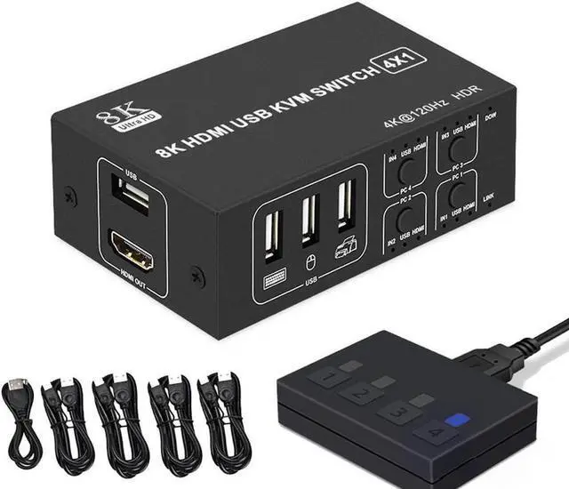 4 Ports: Used to share 4 USB or HDMI-compatible Peripheral devices (such as scanner, USB hard drive or other USB devices) without constantly changing cables.