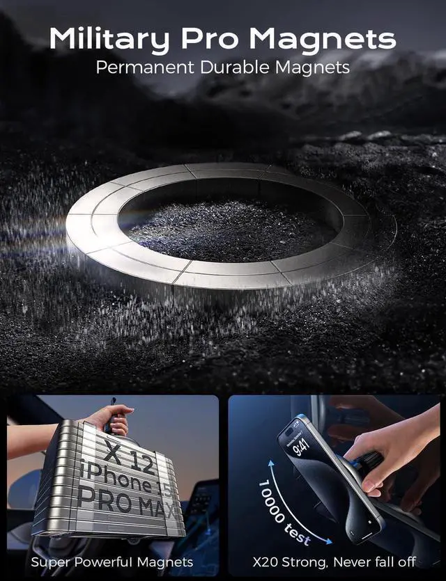 • Advanced High-Quality PP & Glass Glamour: With Advanced High-Quality PP and Ultra-Fine Nano Glass, our Magsafe 3 Car Mount elegantly combines function and style. The high-quality PP material provides durability and heat dissipation, while the nano glass protects your phone, delivering a reliable and chic charging experience