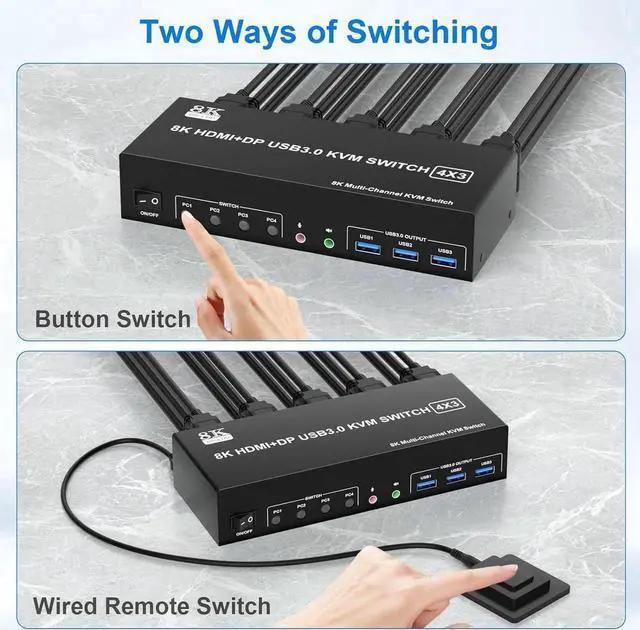 [Ultra HD 8K@60Hz] The HDMI 2.1, DP 1.4 KVM switch supports resolution up to 8K@60Hz and downwards.