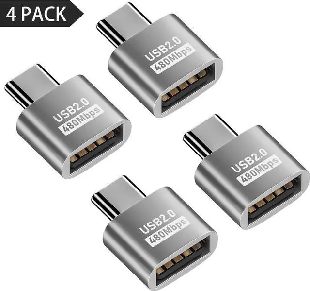 USB C to USB Adapter 10Gbps, Type C Male to A Female Extension Adapater Support Data Transfer and Charging for Phone, Laptop, USB Keyboard 4 Pack (Silver)