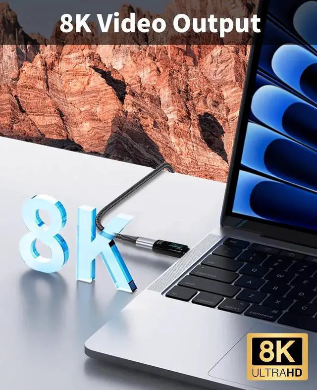 2. [8K Video Output]: The USB-C female to male adapter supports UHD resolution. Connect your laptop to an external monitor or simultaneously extend the screen to 8K@60Hz or 4K@60K@2Hz monitors. Note: For video functionalities, ensure your USB C port device supports DP Alt Mode