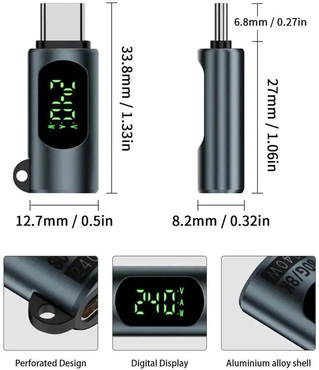 240W PD Fast ChargingThe adapter can provide up to 240W (48V/5A) PD charging, equipped with an E-Marker chip, fully meeting your charging requirements for Macbook, iPhone 15 series or other USB-C devices, ensuring more stable charging.