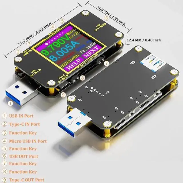 [UNBEATABLE DESIGN]: 1.44'' LCD display with screen display rotating function design; 4 operating buttons and 5 connected ports. Plug robust coating with the gold-plated USB contacts can resist scratch, stain and damage. (Note: If the screen doesn't function or turn on/off frequently while it's connected to the power supply, please flip the connector of the USB C Cable to confirm if it can work correctly. For energy-saving, the lights on the screen will go off after 30s.)