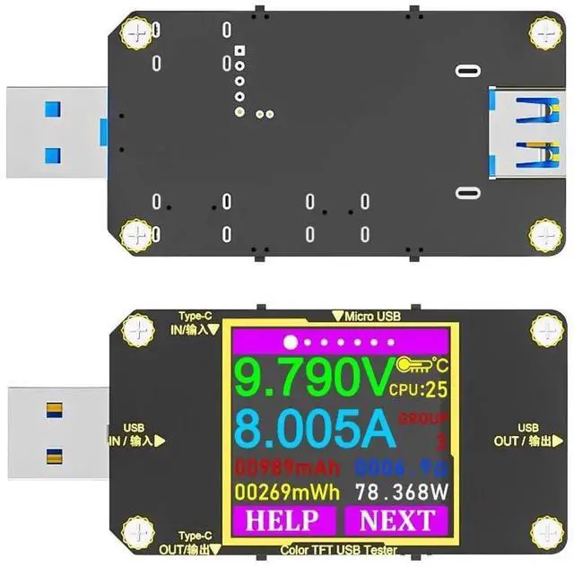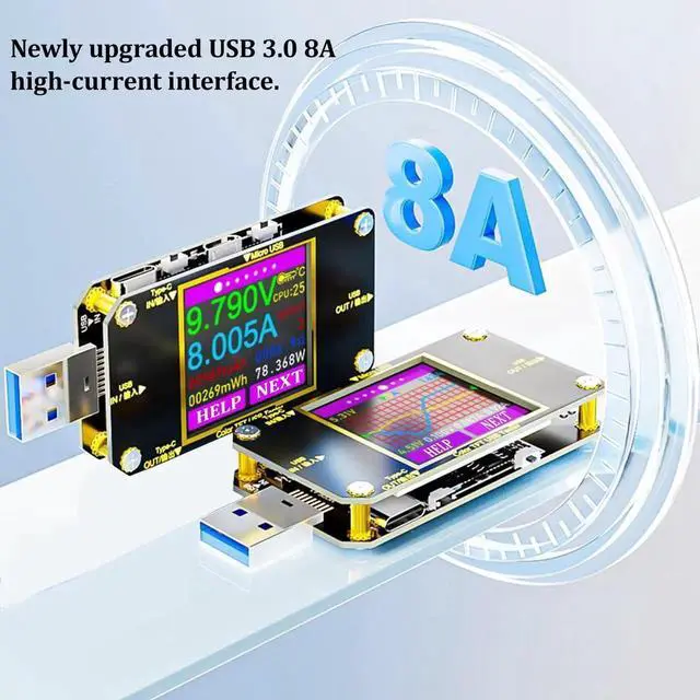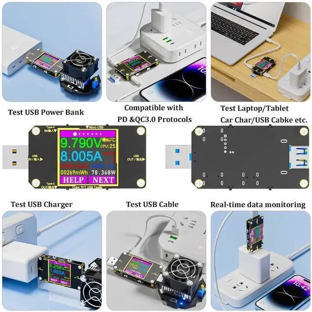 [MULTIFUNCTIONAL TOOL]: Support quick charger recognition; data wire resistance value testing; QC2.0/QC3.0, Voltage/Current/Power Detection; data store; cable impedance measurement. Allows you to check the charging performance of the output wall/car/solar panel chargers and USB charging cables. It can be also used to find the highest current of the Wireless Charger, and test capacity and electric energy of power bank.