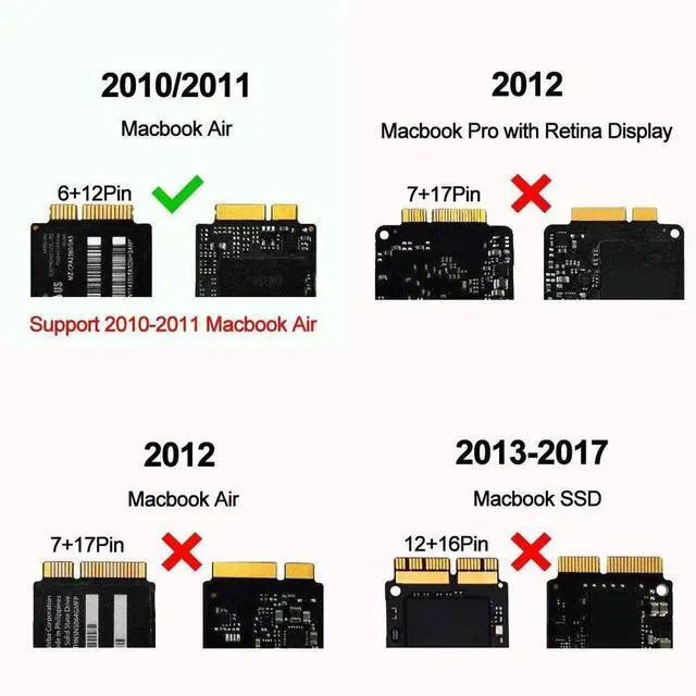 This product is compatible with Late 2010- Mid 2011 MacBook Air SSD from: