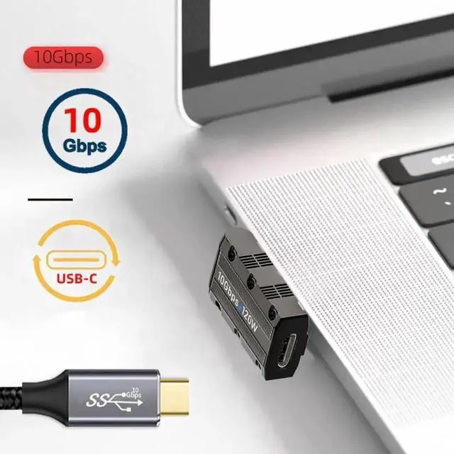 USB-C USB 3.1 Type C Female to USB 3.0 Type-A Male 90 Degree Left Angled Type 10Gbps Data 120W Power Adapter Alloy Shell