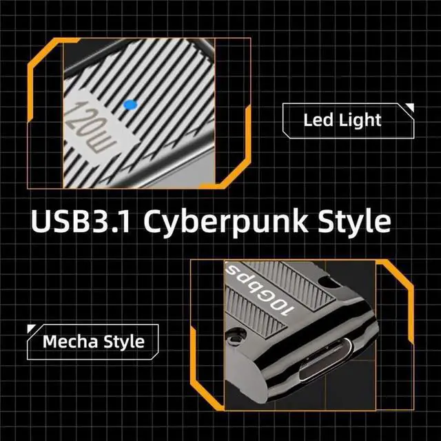 Mecha Style USB 3.1 adapter. With its innovative power and sci-fi hardcore design, the final product is a fully technological and futuristic cyberpunk style.