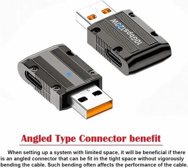 USB-C USB 3.1 Type C Female to USB 3.0 Type-A Male 90 Degree Right Angled Type 10Gbps Data 120W Power Adapter Alloy Shell
