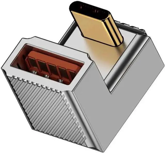 USB-C USB 3.1 Type C Male to USB 3.0 A Female 10Gbps OTG Data 120W Power Opposite U Shape Back Angled Adapter Alloy Shell Mecha Cyberpunk Style