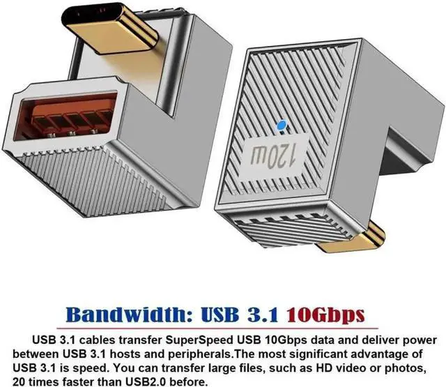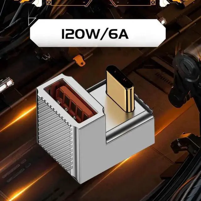 USB-C USB 3.1 Type C Male to USB 3.0 A Female 10Gbps OTG Data 120W Power Opposite U Shape Back Angled Adapter Alloy Shell Mecha Cyberpunk Style