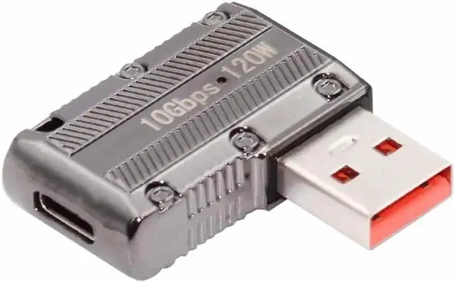 USB-C USB 3.1 Type C Female to USB 3.0 Type-A Male 90 Degree Right Angled Flat Type 10Gbps Data 120W Power Adapter Alloy Shell