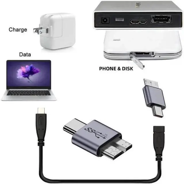 • USB-C USB 3.1 Type C male to Micro USB 3.0 Male Data Adapter 10Gbps Data Power