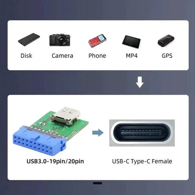 • You can convert the 9pin motherboard internal usb 3.0 port to external Dual USB type C socket.