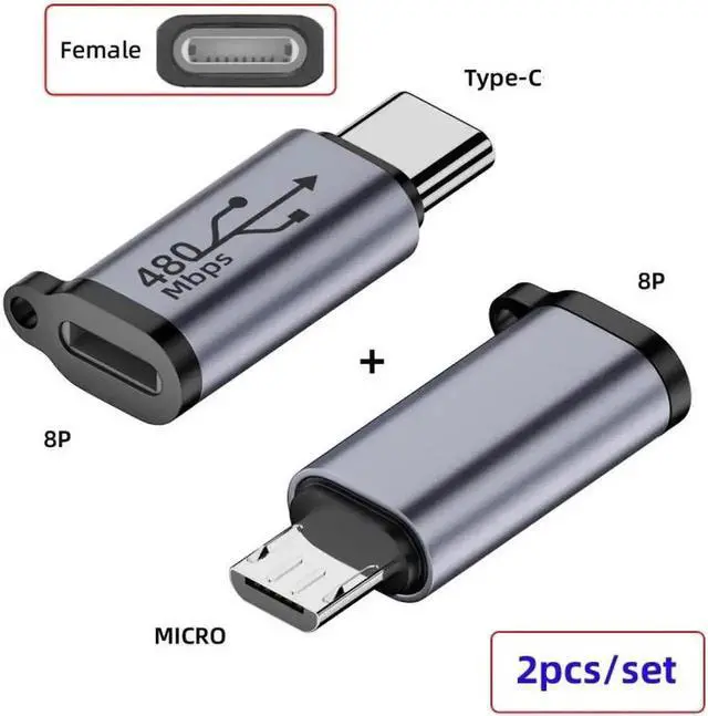 Aomoproing 2pcs/lot USB2.0 8P Female to Micro USB Type-C USB-C Male Power Adapter 480Mbps Data with Chain Holes