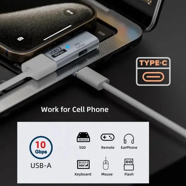 • 10Gbps USB-C Type-C to USB 3.0 Female OTG & 100W PD Power Adapter for Laptop Tablet Phone