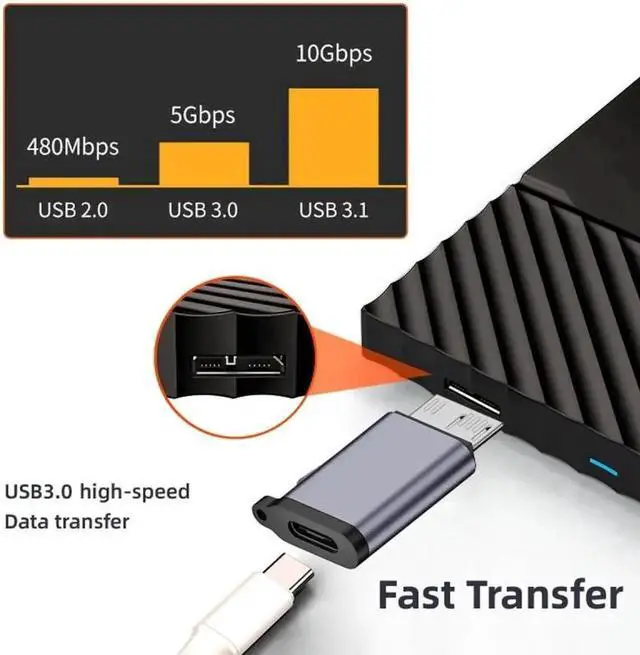 1. USB-C USB 3.1 Type C Female to Micro USB 3.0 Male Data Adapter 10Gbps Data Power with Chain