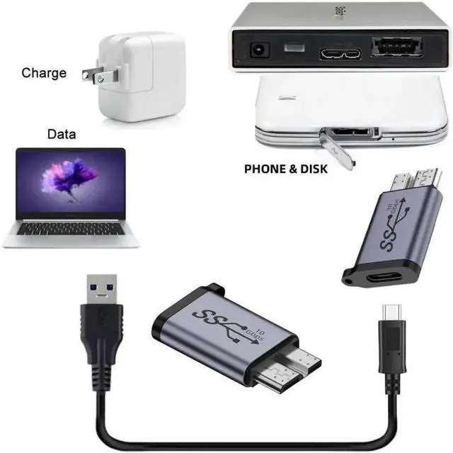 • USB-C USB 3.1 Type C Female to Micro USB 3.0 Male Data Adapter 10Gbps Data Power with Chain