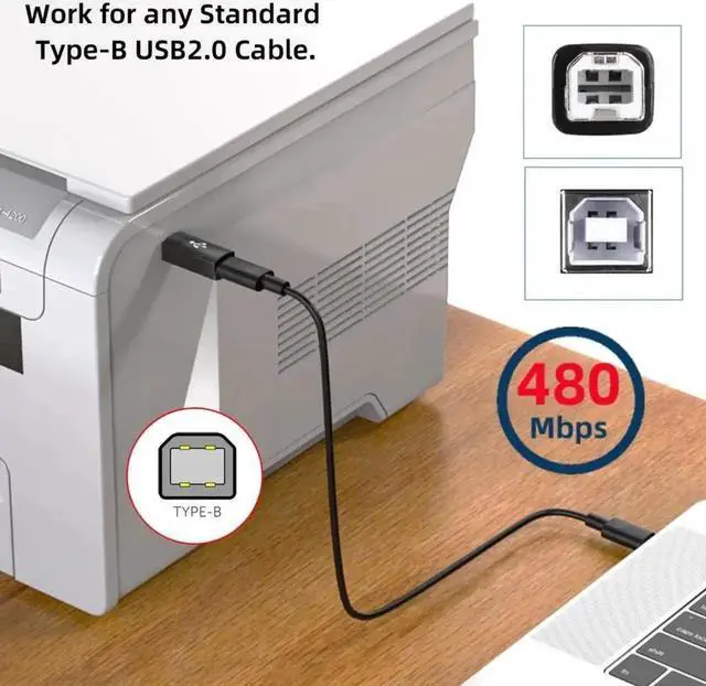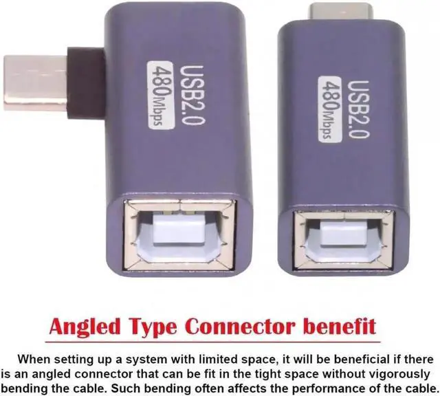 Used to connect USB Type B cables in tight fit applications. Can work for Printer Scanner Hard Disk extension.