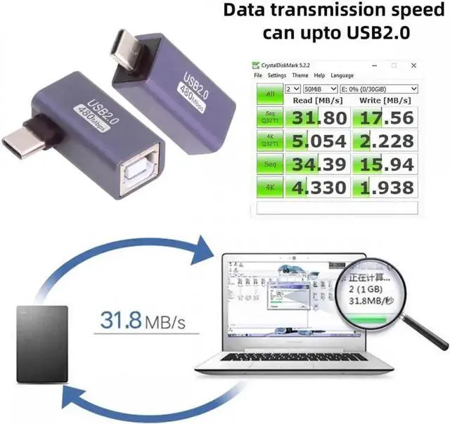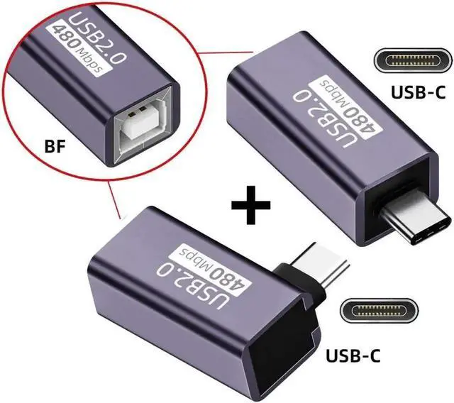 The package included 2pcs adapter. One Side is Female USB B Type,The Other Side is USB C male (Straight type+Angled Type).