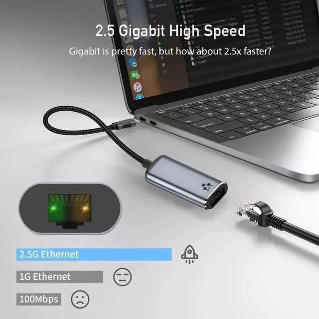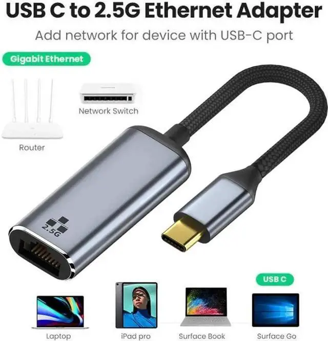 The USB-C Ethernet Adapter allows user's computer instantly connct to a 10/100/1000/2500Mbps network through an existing USB port.