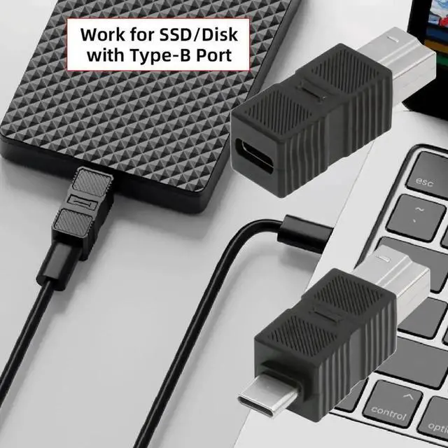 Work for USB 3.0 Type-B device like SSD Camera printer device. Not work for USB2.0 Type-B port.