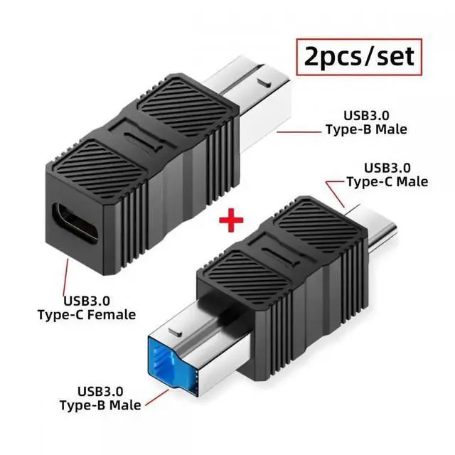 2pcs in the package, 1pc Type-B Male to Type-C Male adapter and 1pc Type-B Male to Type-C Female adapter.