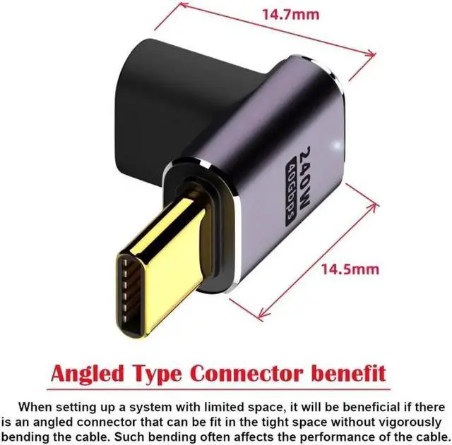 USB4 Type C Male to Female 240W Power 40Gbps Data 8K Video Adapter Low Profile Up Down Angled for NS Phone Laptop