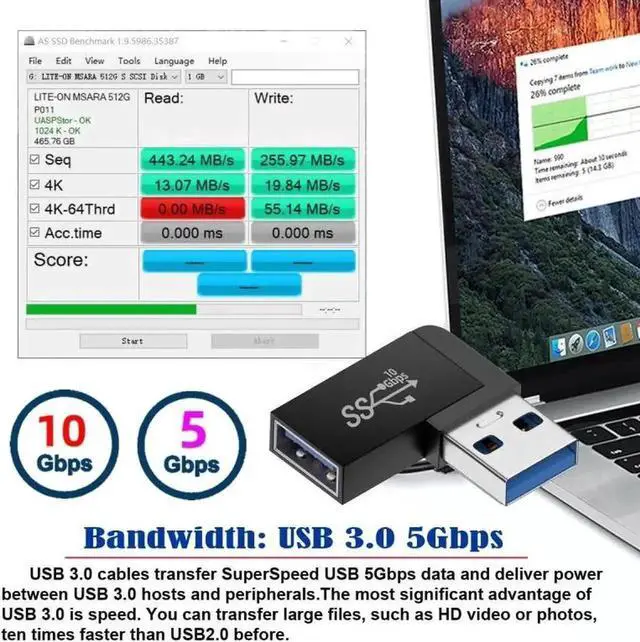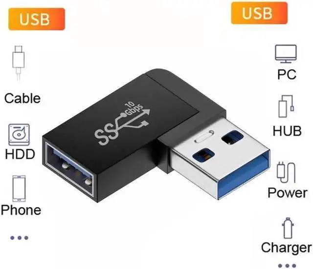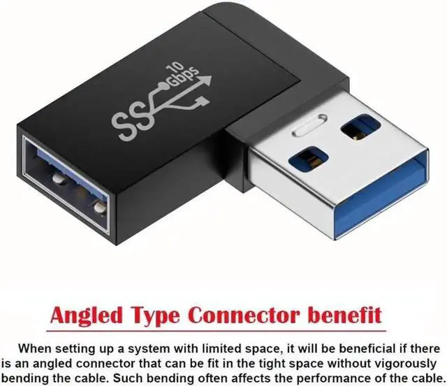 3. Angled USB 3.0 Adapter, Type A Male/Female,Support 10Gbps data transfer rating.