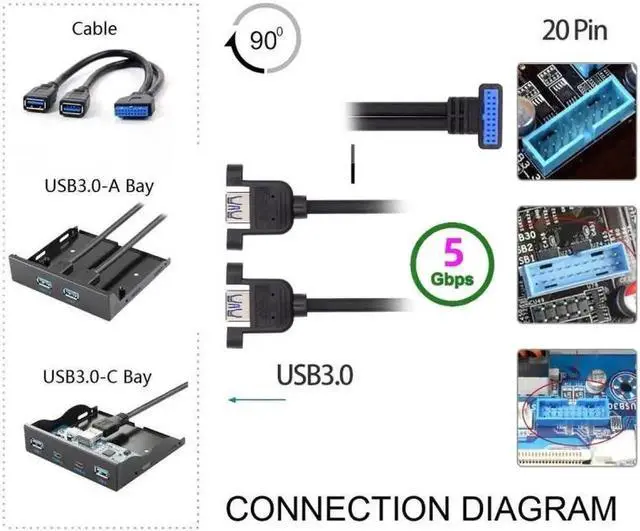• With this cable, you can directly connector motherboard 20pin socket, converted to dual usb3.0 socket.
