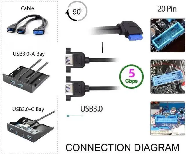 • With this cable, you can directly connector motherboard 20pin socket, converted to dual usb3.0 socket.