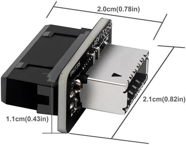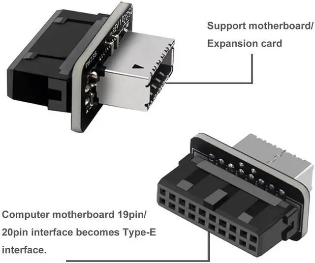 This vertical USB header adapter bridges USB 3.2 Gen 2 Type-E Key-A interface and USB 3.0 20Pin motherboard header, realizing seamless internal signal conversion. Made with high-quality circuit boards and corrosion-resistant pins, it maintains reliable high-speed data transmission and stable power supply. The vertical mounting structure avoids cable extrusion and messy wiring inside compact cases. Plug and play without extra drivers, widely applicable for desktop motherboards, chassis front panel modification and Type-C interface expansion.