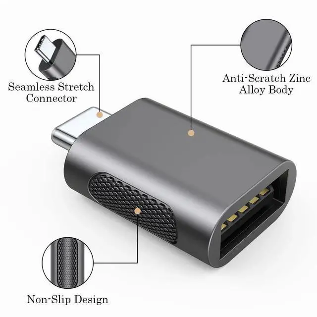 This high-efficiency USB-C to USB 3.1 adapter delivers stable 10Gbps high-bandwidth transmission and universal OTG connectivity. It perfectly bridges Type-C ports to standard USB-A peripherals while supporting Thunderbolt 3 and 4 devices for stronger compatibility. Sturdy space grey exterior offers excellent durability and heat dissipation for daily long-term use. Mini lightweight design is easy to carry and store, ideal for home, office and business travel. Effortlessly expand device ports for laptops, desktops and smartphones to meet daily peripheral connection and high-speed data transmission demands.