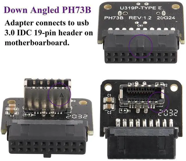 This 90-degree down-right angle conversion adapter connects motherboard 19Pin USB 3.0 header to USB 3.1 Type-E front panel port. It solves interface mismatch and wiring troubles during PC assembly and modification. Reasonable angle layout effectively saves chassis space, tidies internal lines and prevents bending damage. Made of high-quality conductive contacts and insulating housing to ensure secure connection and stable data transmission. Widely suitable for mainstream desktop motherboards, it is a practical accessory for computer hardware expansion, case replacement and DIY wiring arrangement.