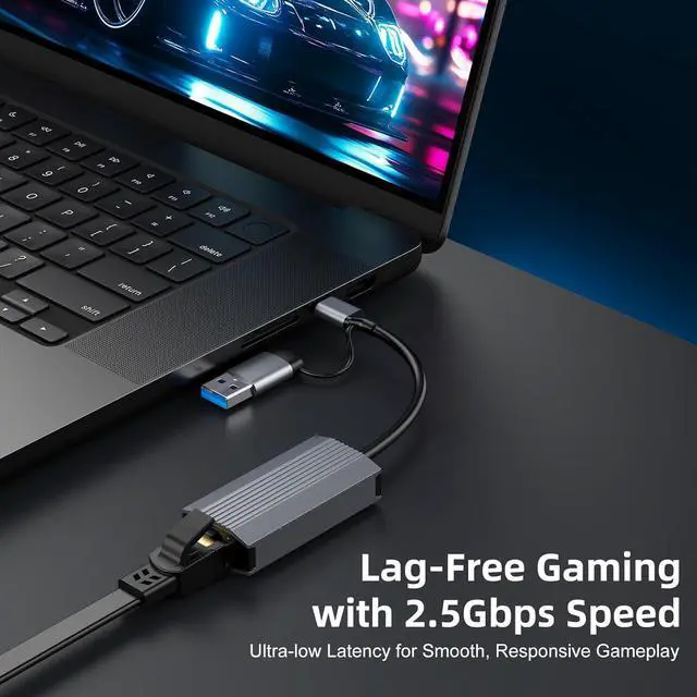 Upgrade your connectivity with blazing 2.5 Gigabit Ethernet speed for faster downloads, smoother 4K/8K video streaming, and ultra-low latency gaming. Whether youre transferring large files to a NAS or joining a high-definition video conference, this adapter ensures seamless performance.