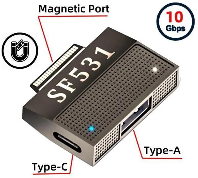 Magnetic connector to Type-C and Type-A USB port, work for SSD, keyboard, Mouse Hub and Type-C device.